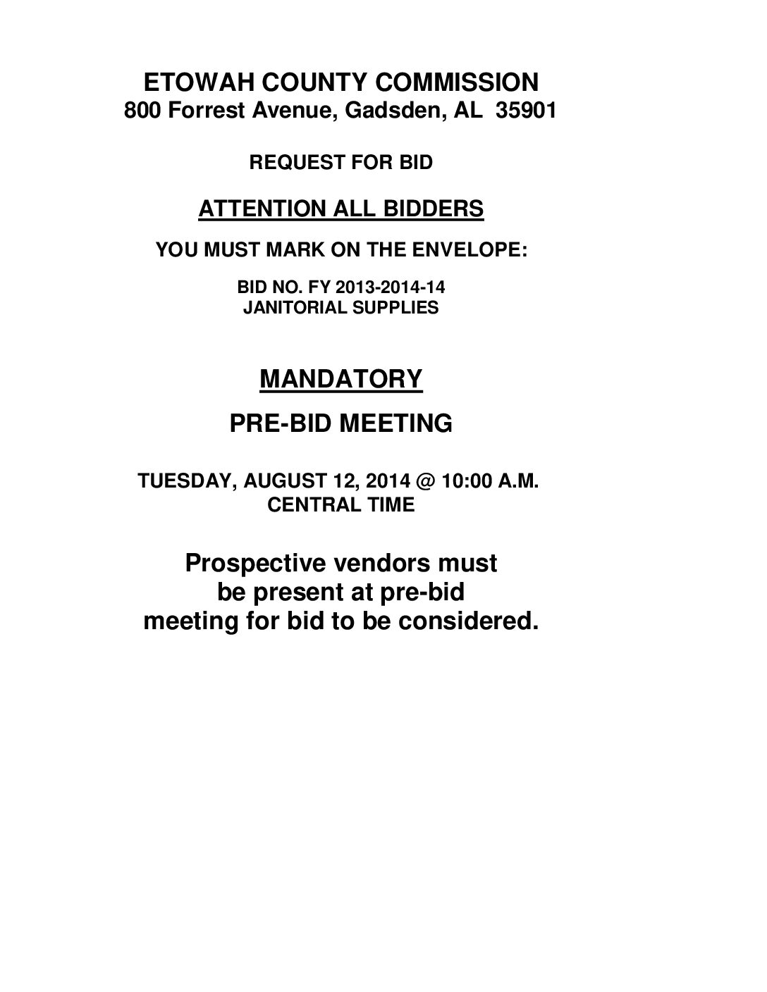 Awarded to McCleskey Brothers, Inc. – 09/02/2014