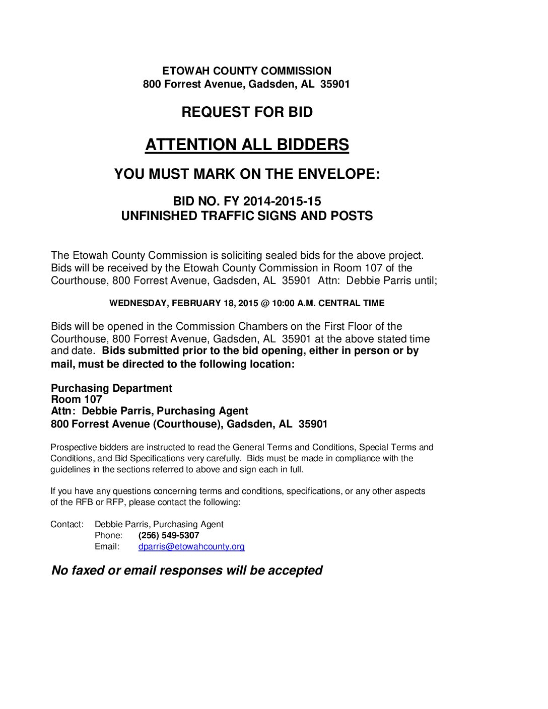 Awarded to Traffic Signs, Inc. – Commission Meeting – 03/03/2015