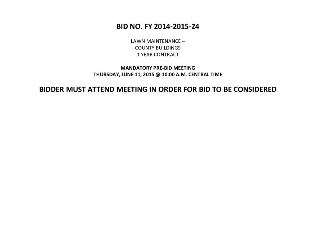 BID NO. FY 2014-2015-24 LAWN MTCE – COUNTY BUILDINGS – 1 YR CONTRACT Awarded to Precision Lawn – Commission Meeting 07/07/2015