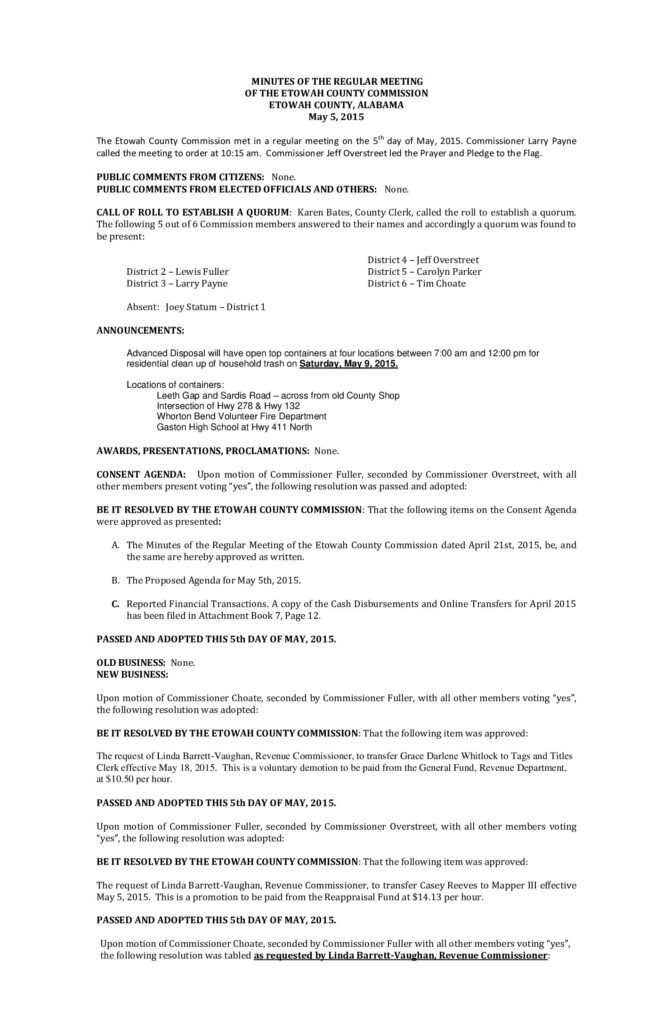 The May 5th and May 19th 2015 Minutes of the Etowah County Commission